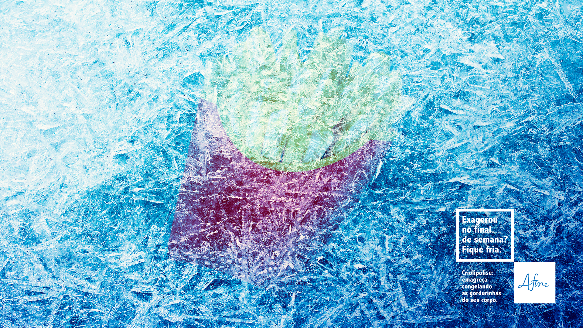 Campanha para a Afine Estética, mostrando o novo serviço da clínica, a Criolipólise. Um procedimento que congela a gordura corporal em locais de difícil remoção.